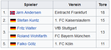 Erstmals in der Geschichte der Bundesliga wurde mit Jörn Andersen ein ausländischer Spieler Torschützenkönig.